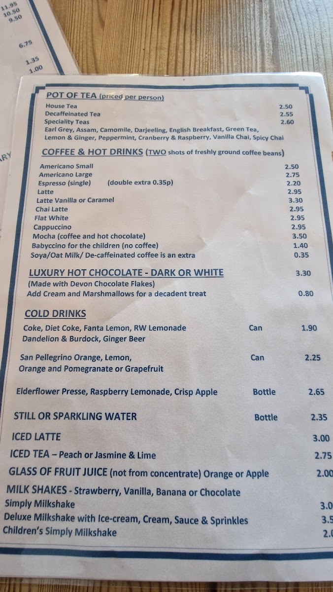 Selection of Cold drinks sparkling including Simply Elderflower, Dandelion & Burdock, Ginger Beer, Rhubarb lemonade, Strawberry & Raspberry,, Coke, Diet Coke, Sprite and San pellegrino Lemon and Orange Non-sparkling Apple/Orange Juice, Squash and Milkshakes from